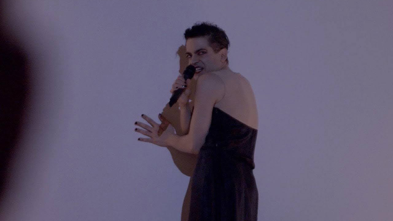 Main Image: Performance photo of Jack Ferver in their work, IS GLOBAL WARMING CAMP, and other forms of theatrical distance for the end of the world. Mass MoCA, September 2022